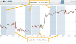 Pre and Post-Market activity can be displayed on Intra-Day charts: