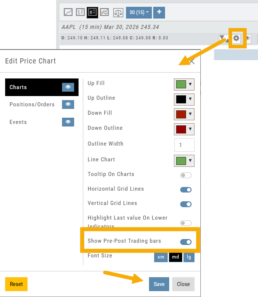 Then, toggle “Show Pre-Post Trading bars” to the On position, as shown.