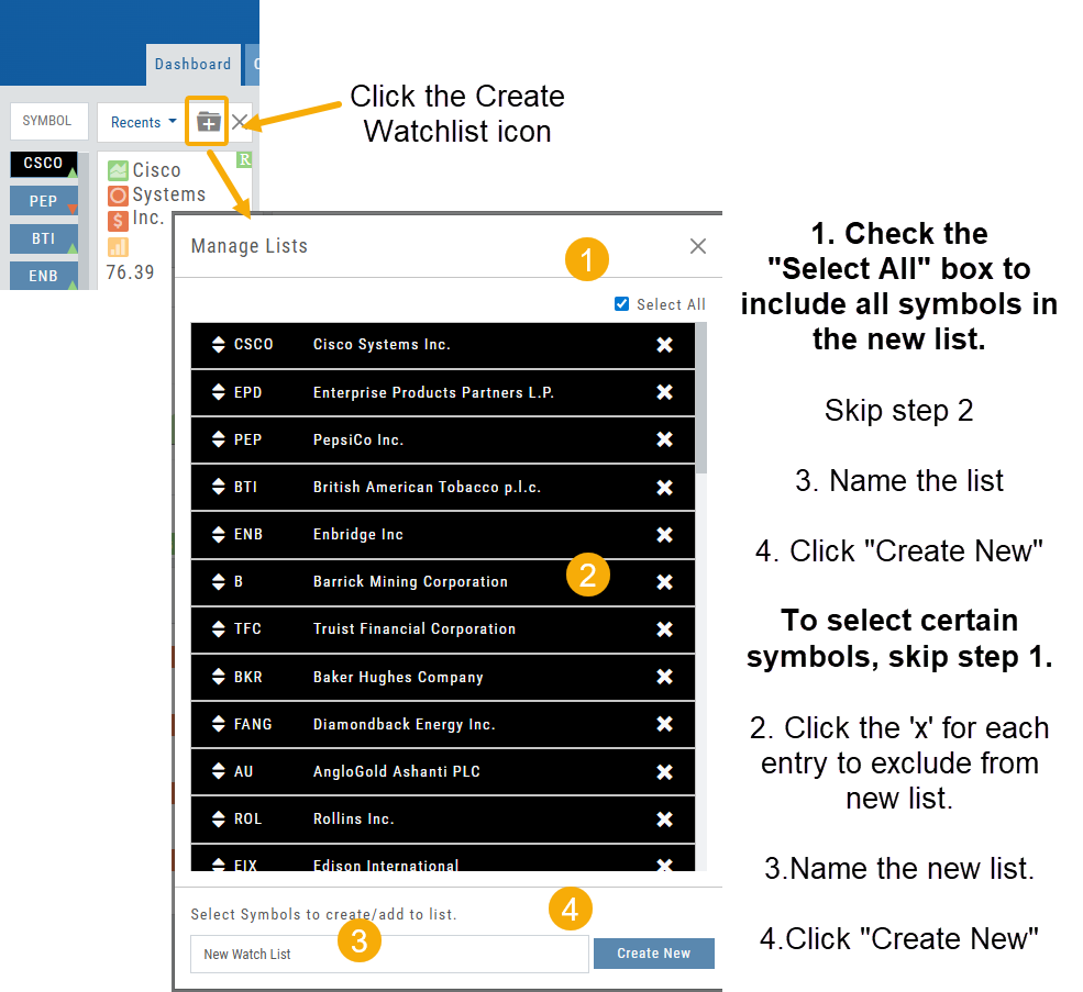 - Adding a symbol when Creating a new Watchlist automatically adds to the list. The “Add” button has been removed.